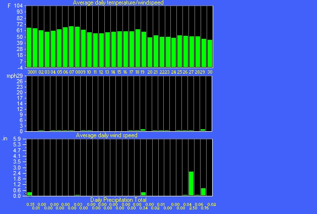Maximum windspeed       = 4.6 mph from 180°( S ) on day 19 at time 13:03